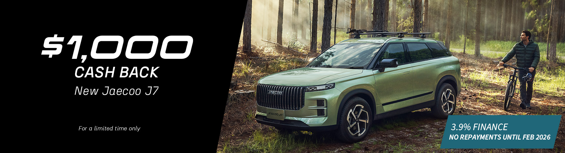 *Terms and Conditions: Purchase any new Omoda Jaecoo model and receive a $1,000 incl. GST ‘Cash Back’ discount off the MSRP, when you purchase between November 1st and November 30th 2025. Cash Back is applied as a discount to the vehicle MSRP at time of purchase and is not redeemable for cash. 3 months deferred repayments offer is based on a 10% deposit and an interest rate of 3.9% p.a. is fixed for the 36-month term of the loan and is available on all new Omoda Jaecoo Models from 1st of November 2025 to 30th November 2025. If you defer your payments up to 3 months, interest will still accrue during the deferral period and will be added to and form part of the loan, together with applicable fees. Payments will begin on the date falling 3 months after the first schedule repayment date. You must repay the full amount of the loan, and your repayments will be spread over the remaining loan term. This offer is not available in conjunction with any other finance offer. The loan term cannot exceed 36 months, and structured payments are not available on this offer. A PPSR fee of $10.35, a monthly maintenance fee of $2, a UDC loan fee of $130, a dealer origination fee of $395 will apply. The loan is provided by UDC Finance Limited. UDC’s lending criteria and standard terms and conditions apply. Not available in conjunction with any other offer. Offer ends November 30th 2025 or while stocks last. Chery Motor New Zealand Limited reserves the right to remove or adjust this offer at any time.