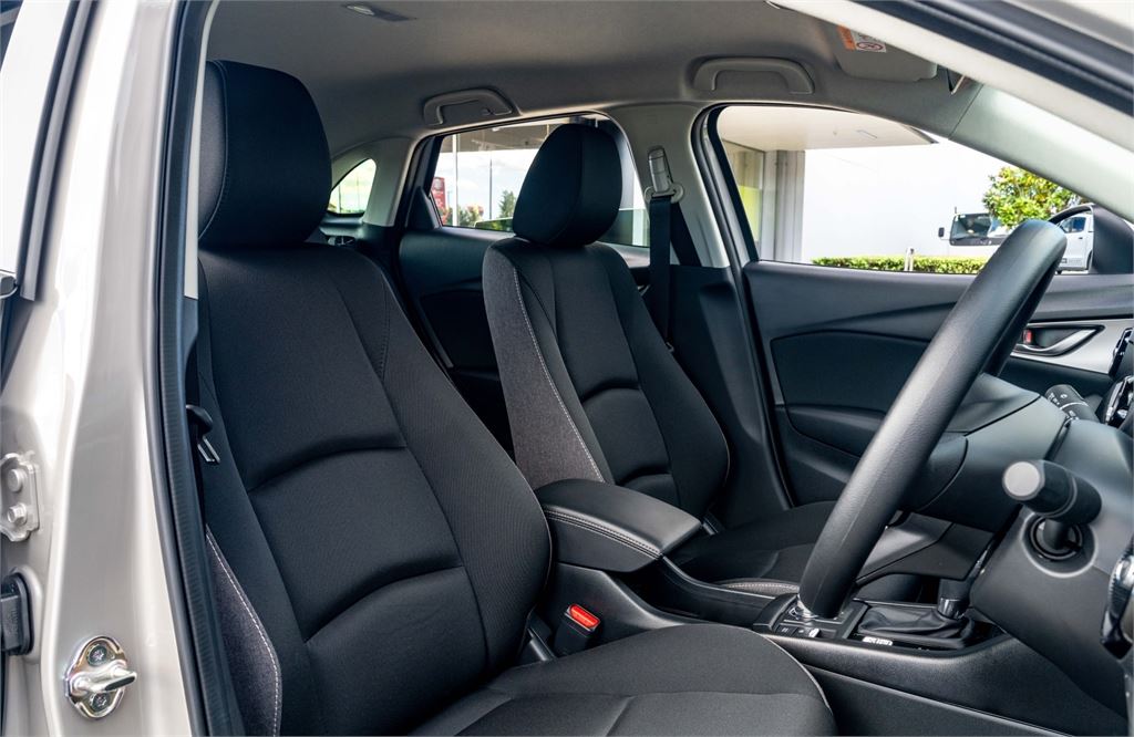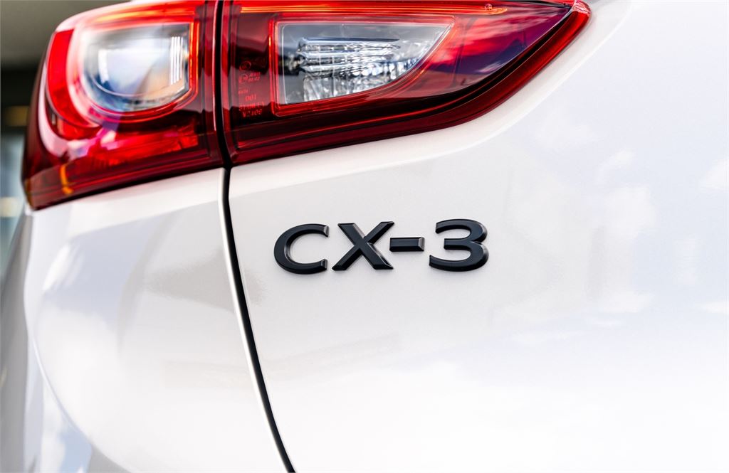 The 2025 CX-3 GLX has been updated with Apple CarPlay/Android Auto, 8 Inch Touchscreen, Electric Park brake with Auto Hold Function, Arm Rest and Advanced Smart City Brake Support.