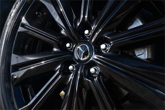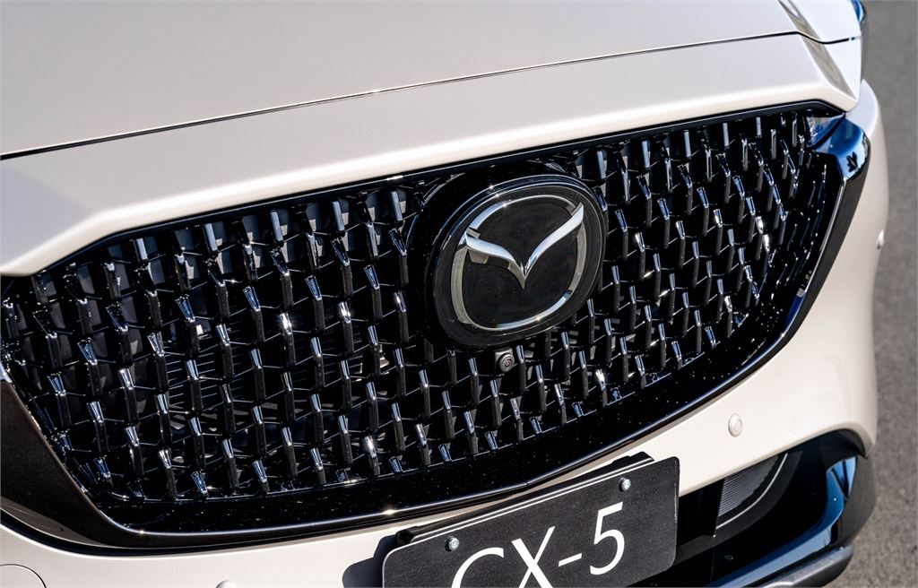 The latest CX-5 Limited grade now offers a 360 Degree Camera and a distinct "Blackout" design aesthetic inside and out. It's outfitted with a revised front grille and paired with a set of 19" black metallic alloy wheels. Punctuating this striking look is a new black leather interior with red stitching.